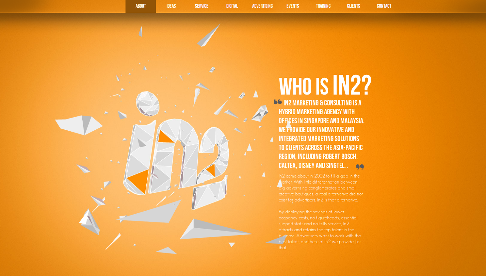 This is a case study that my team set out to explore HTML5 / CSS3 but it is also served as pitch deck for my company's profile presentation. This one-page parallax scrolling website is inspired by the one of the 2010 buzzing HTML5 experiences, nikebetterworld.com. Everything was coded from scratch.