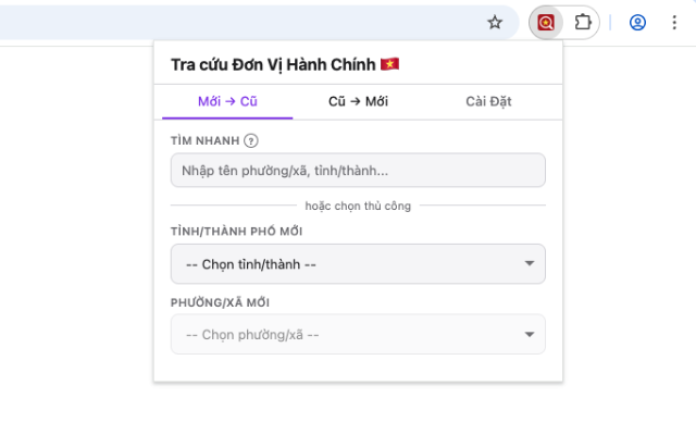Web Extension: Tra Cứu Đơn Vị Hành Chính VN